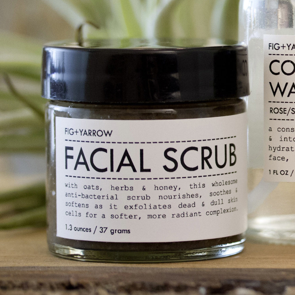 A concentrated facial exfoliant from FIG+YARROW with oats, herbs, minerals, honey and floral essences. This wholesome scrub nourishes, soothes and softens as it exfoliates dead / dull skin cells for a softer, more radiant complexion. Made for face though also excellent for gently removing rough / dry skin of lips, hands, elbows and knees. Appropriate for all skin in need of exfoliation.