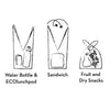 Going green at lunchtime is easy with this superbly sustainable snack set! ECOlunchbox's slogan is "Green Lunches = Blue Waters." Did you know plastic debris threatens our oceans and marine life? We believe that by reducing our dependence on plastics (perhaps at lunchtime) we can improve our own health as well as that of our planet!