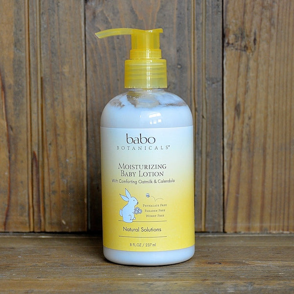Babo Botanicals' sensitive skin moisturizing lotion is the gentlest blend of nourishing botanicals to soothe and protect sensitive or dry skin. Collodial oatmeal is well known to comfort itchy, dry, chafed skin associated with eczema, and organic calendula oil and shea butter moisturize skin and help relieve cradle cap