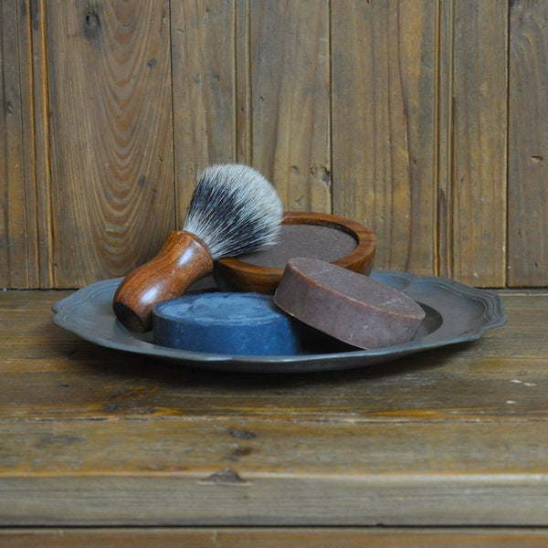 These traditional unisex shaving soaps from A Wild Soap Bar are made with organic aloe (instead of water) to soothe and soften, plus loads of organic coconut and castor oils, calcium bentonite clay and extra glycerin for a rich creamy lather. They protect and soften for a close and comfortable shave, leaving your skin smooth and moisturized. Use the 3" round bar with a shaving brush and mug, or lather it directly onto moistened skin.
