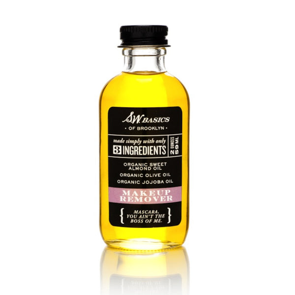 Makeup removers go onto some of the most sensitive skin on your whole body. So as always, SW Basics kept theirs as simple as possible. Three 100% organic ingredients make up the super-light elixir: sweet almond oil, a bit of organic extra-virgin olive oil, and a little jojoba oil.