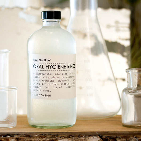 FIG+YARROW's therapeutic blend of pure and natural ingredients to be employed for the dispelling of offensive breath odor and general enhancement of the oral theater.