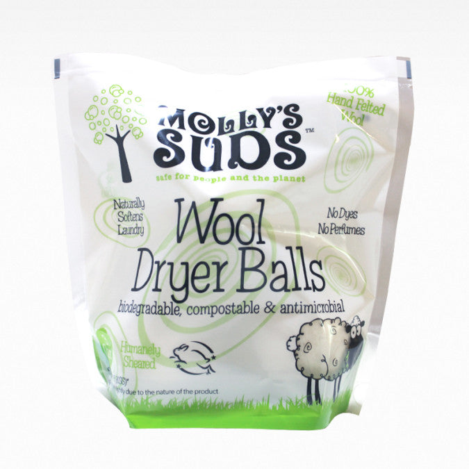 Replace the need for toxic fabric softeners with Molly’s Suds 100% hand felted Wool Dryer Balls, which last up to 1,000 loads in the dryer, or three years, and reduce drying time.