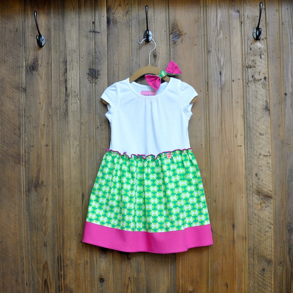 Organic Playdress ~ Honey Bees (Green + Pink)