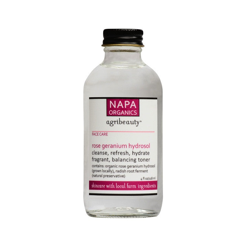 Napa Organics' Rose Geranium Hydrosol is organic and locally grown in Napa Valley. This beautifully scented hydrosol is non-drying and contains droplets of pure rose geranium essential oil. Slightly astringent, it can be used as a daily toner or as a refreshing facial mist throughout the day. Generously apply to a clean face with cotton to help clear acne, repair hyper-pigmentation spots, and regain a favorable skin balance. Great as a travel spritzer ~ or anytime you need a lift.