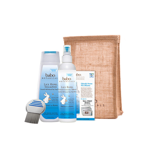 This lice prevention set from Babo Botanicals is all you need to keep lice away. Contains clinically proven, all natural lice repel shampoo and conditioning spray. Use the system daily when a lice outbreak occurs and the smell of tea tree, rosemary, mint and thyme will help repel the lice. The terminator comb, which is FDA approved and rated #1, should be used as well a few times a week to ensure 100% certainty of clearing.