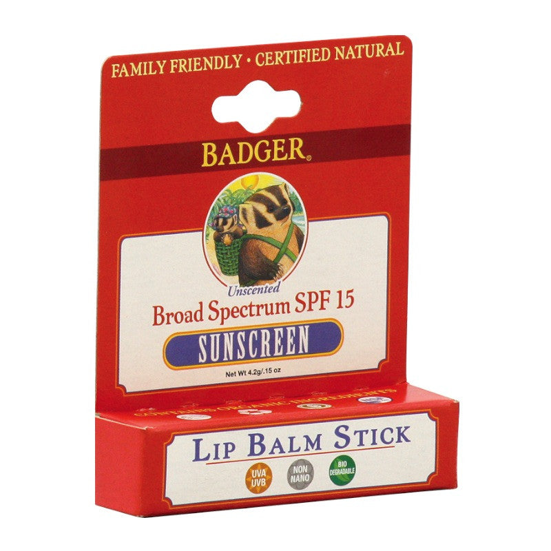 Badger's sunblock lip balm protects with non-nano zinc oxide and is rich in certified organic ingredients. The ultra-moisturizing base ingredients provide added protection from wind, salt, and cold, keeping your lips happy and smiling. The 0.15 oz stick is easy to carry with you ~ at the beach, on the slopes ~ anywhere you need protection. Safe for children of all ages, blocks both UVA and UVB rays, and thoroughly moisturizes while protecting you from the sun.